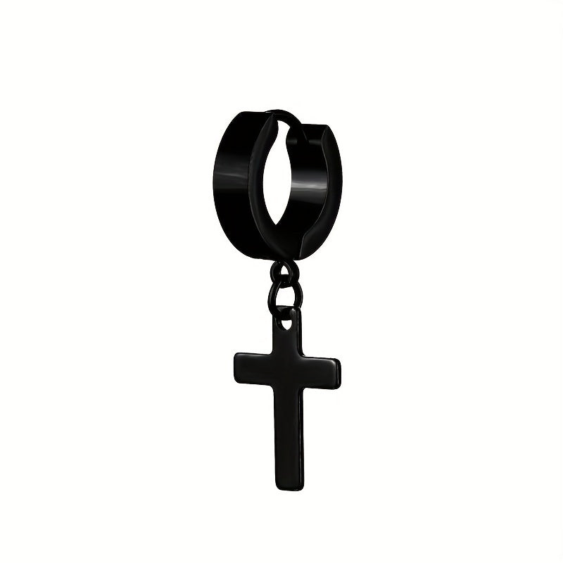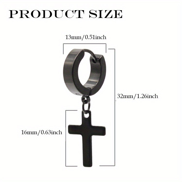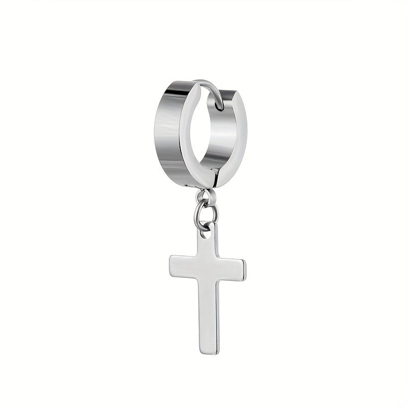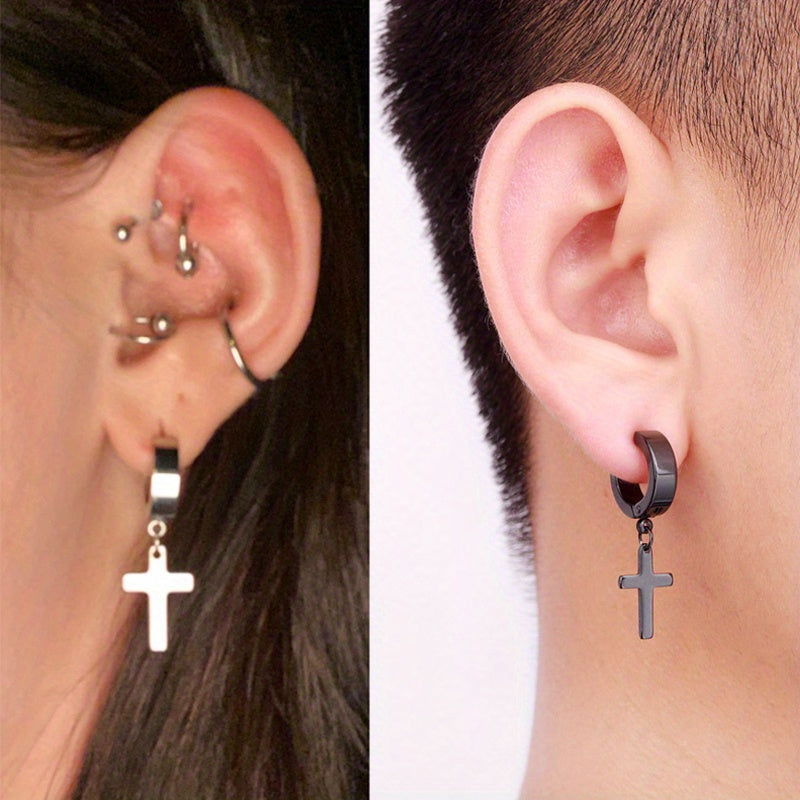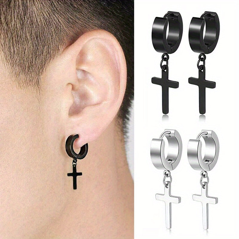2pairs Simple Cross Ear Buckle Earrings, Men's Stainless Steel Ear Clip Earrings