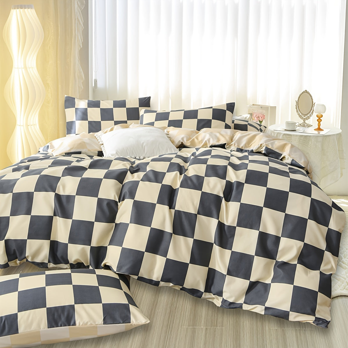 3pcs Checkered Duvet Cover Set, Bedding Set For Bedroom, Guest Room (1*Duvet Cover + 2*Pillowcases, Without Core)