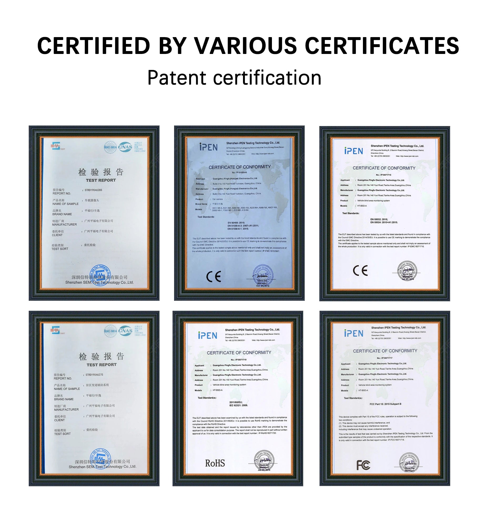 Guangzhou Pingfu Electronics Co., Ltd. was founded in May 2009 (formerly known as Hongtai Factory), mainly serving the automotive aftermarket and OEM and ODM services. The company has a number of product patents and certifications, a professional team and sophisticated manufacturing level, and an independent production base for aftermarket products. At present, it is mainly engaged in assisted driving safety automotive electronic products: reversing image system, BSD microwave radar lane change assistance system, OBD data trajectory image system, wireless Wifi image system, truck and bus monitoring panoramic image system and other products. Adhere to the business philosophy of "achieve customers, achieve employees, and achieve self". With the vision of becoming a well-known automotive aftermarket product enterprise in China.