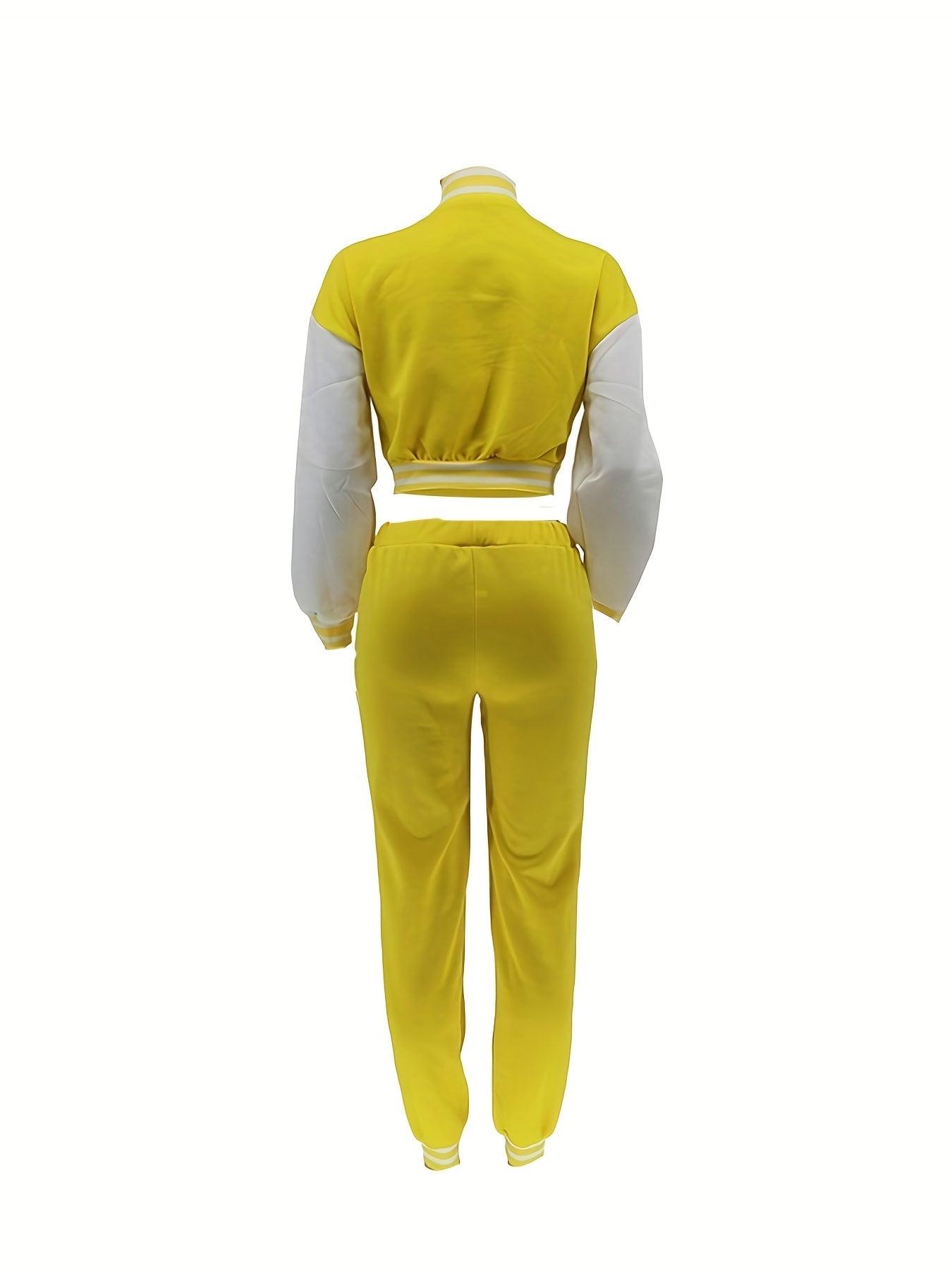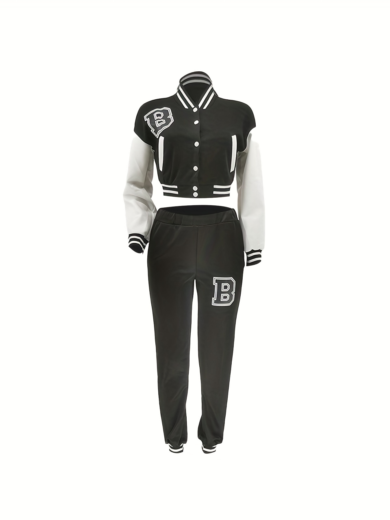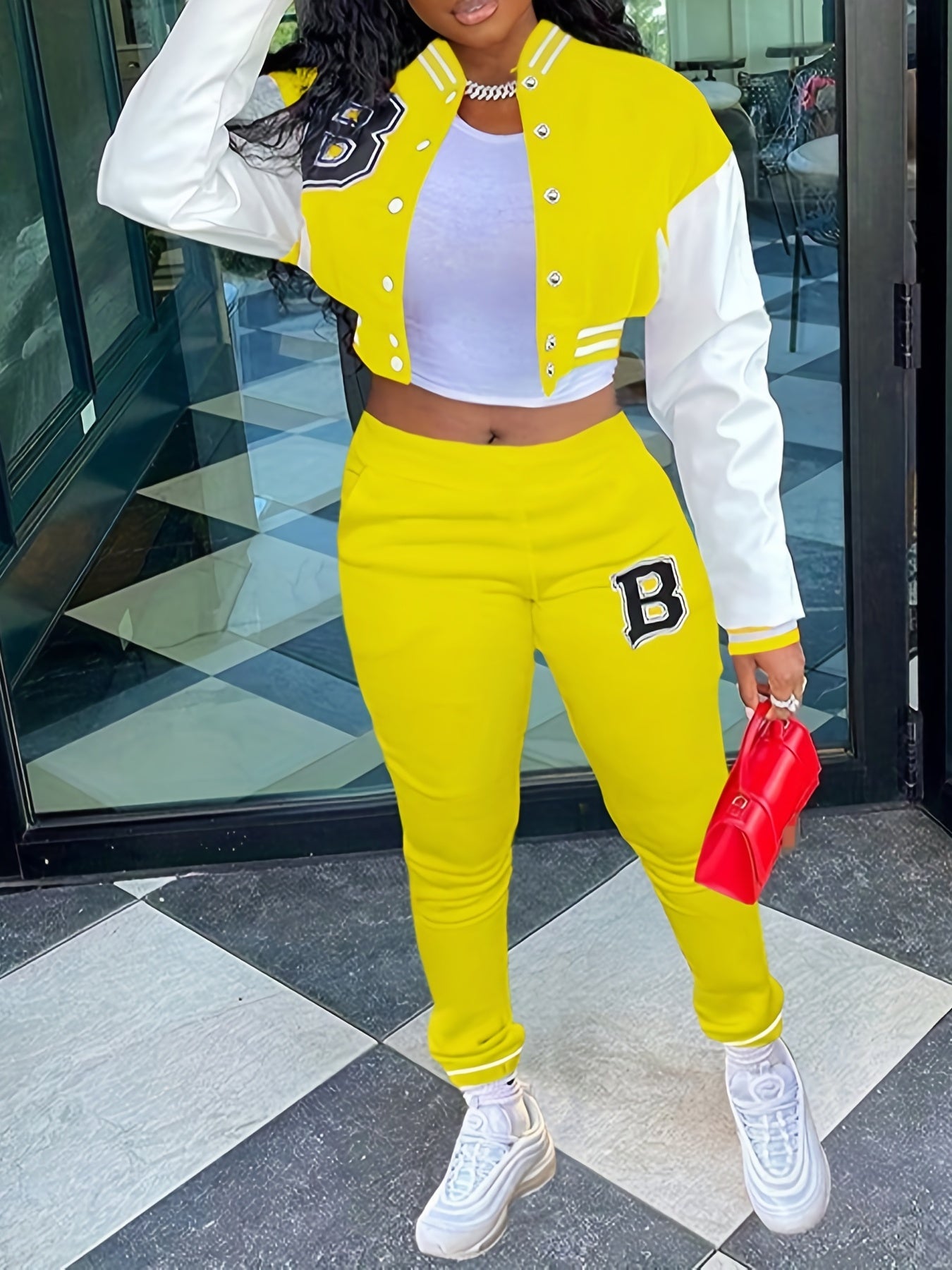 Chic, Women's Casual Letter Print Baseball Jacket and Pants Set - Red and White, Polyester Blend, Machine Washable, Fall/Winter Fashion Ensemble