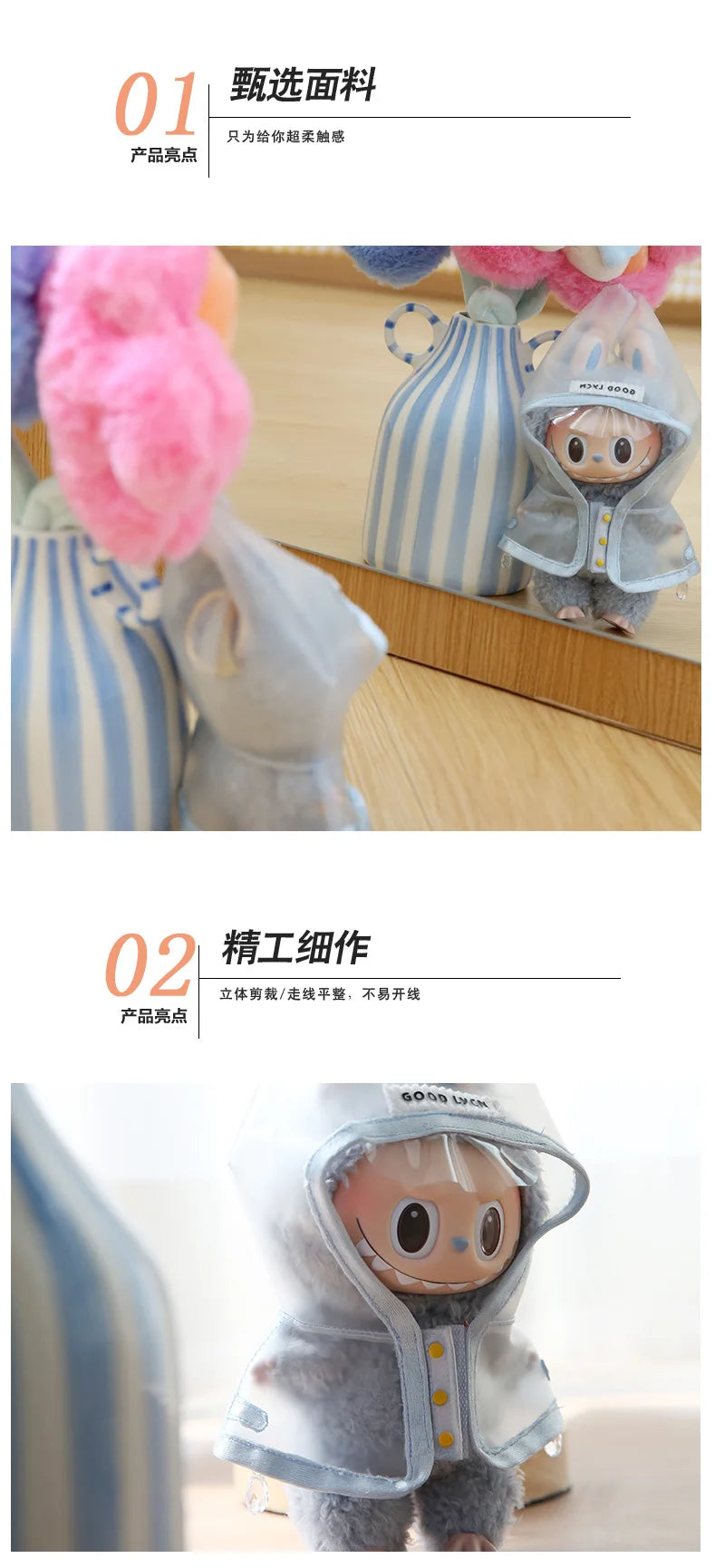 [Clothes Only] Labubu Clothes Changing Transparent Raincoat V1 V2 Changing Clothes Party Labubu Cloth Doll Clothes