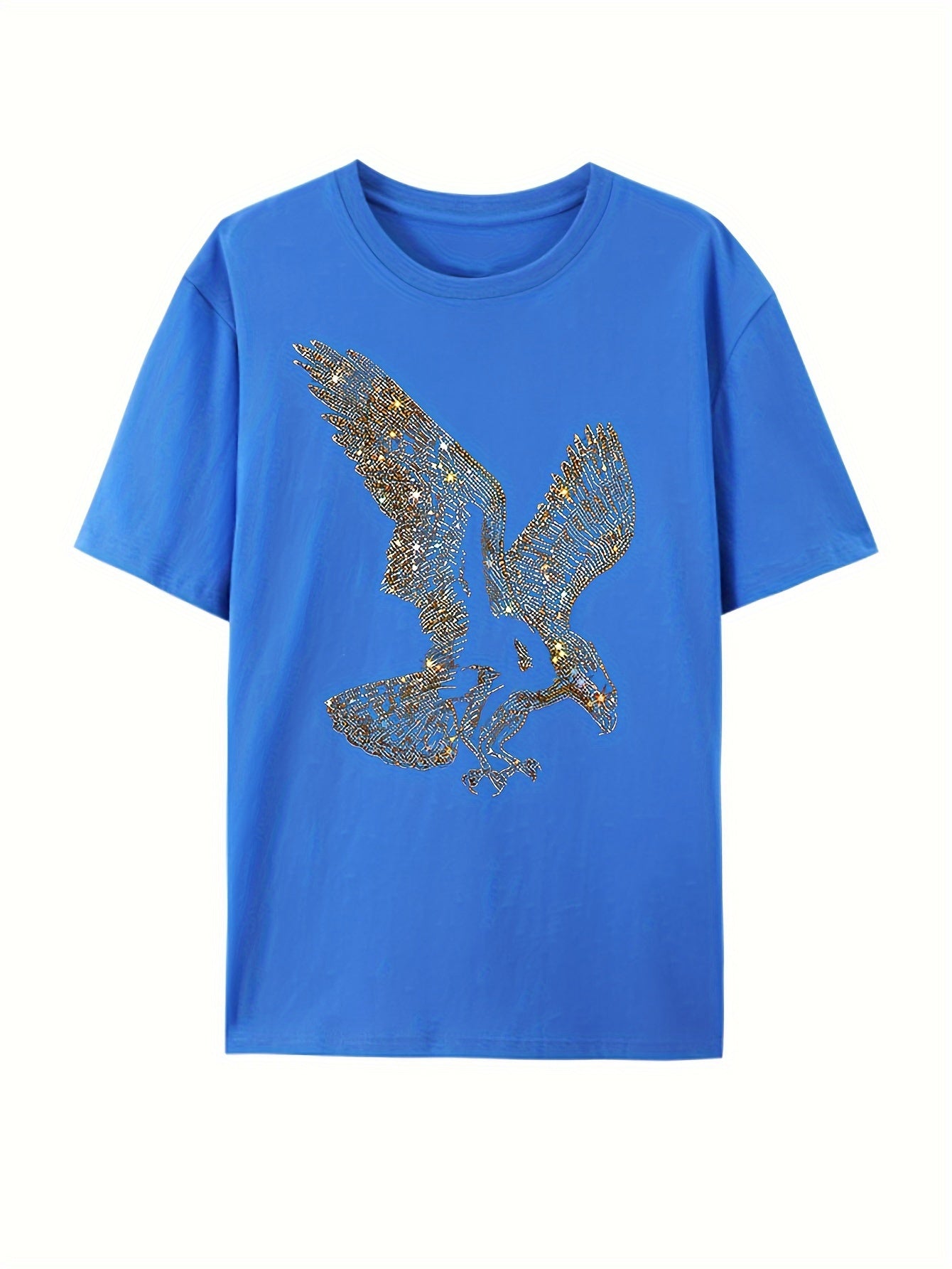 Funny Eagle Graphic T-Shirt with Rhinestone Bling, Comfortable Crewneck Short Sleeve Summer Tee, Cotton - HZCX FASHION