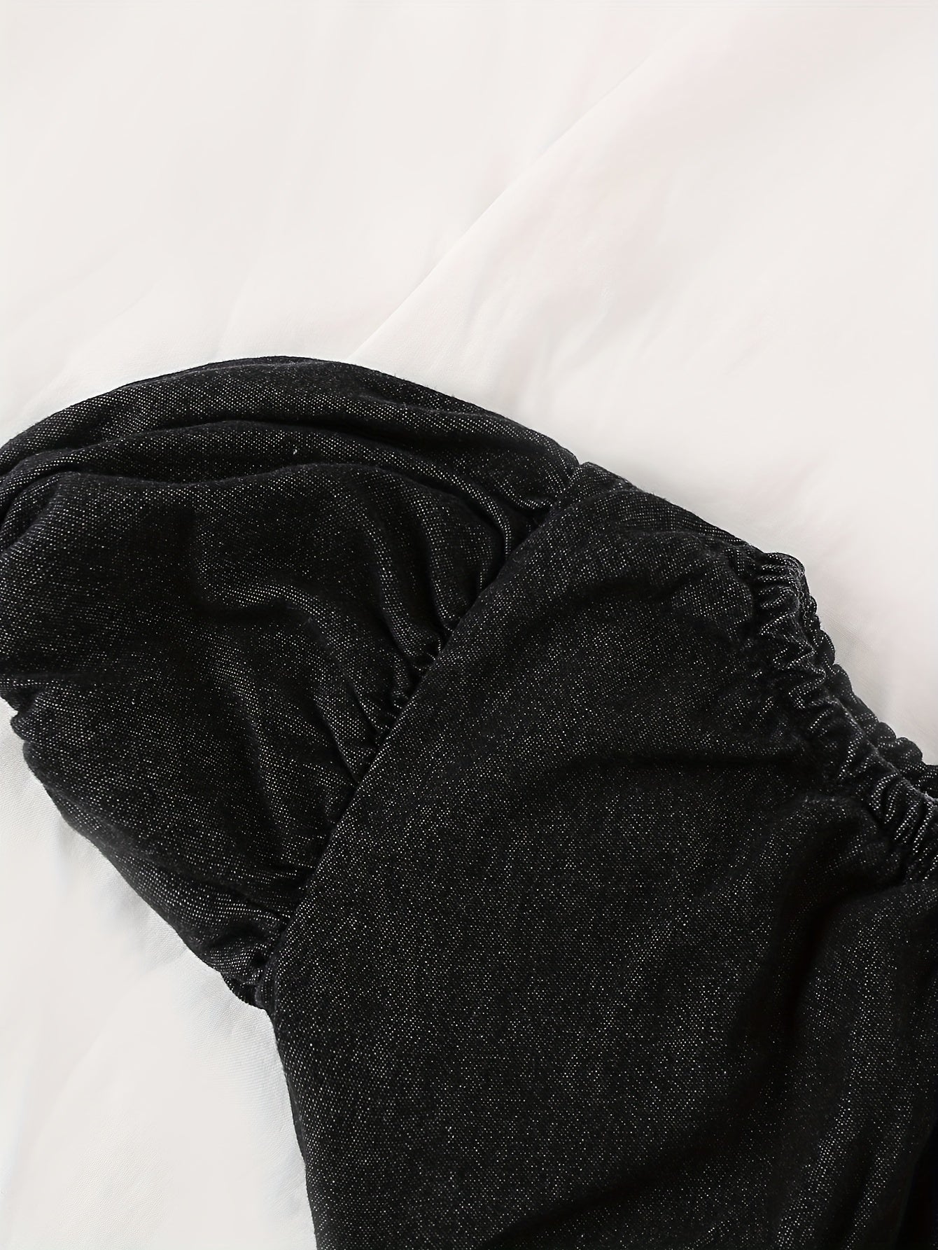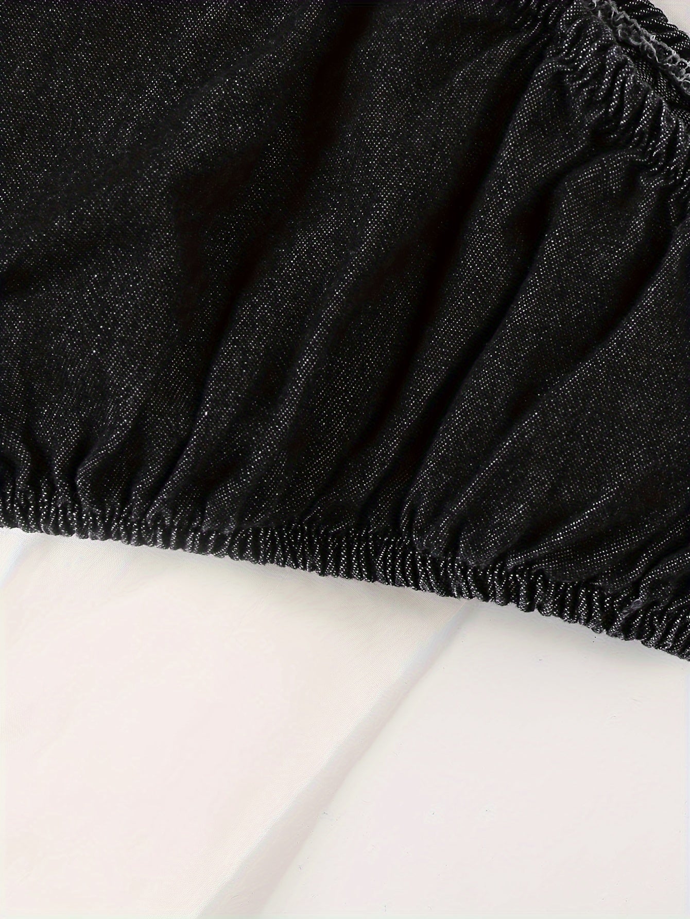 Girls Chic Denim Outfit - Premium Fabric, Slant Shoulder Top, Irregular Raw Hem Skirt, Complete Set for Girls - Trendy and Comfortable Denim Set for Everyday Wear