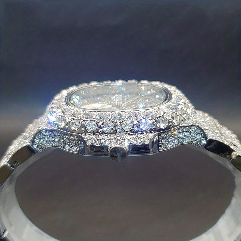 Gold Watch For Men Diamond Iced Out Hip Hop Stylish Quartz Watches For Male Double Dial Heavry Waterproof Wristwatches Summer In