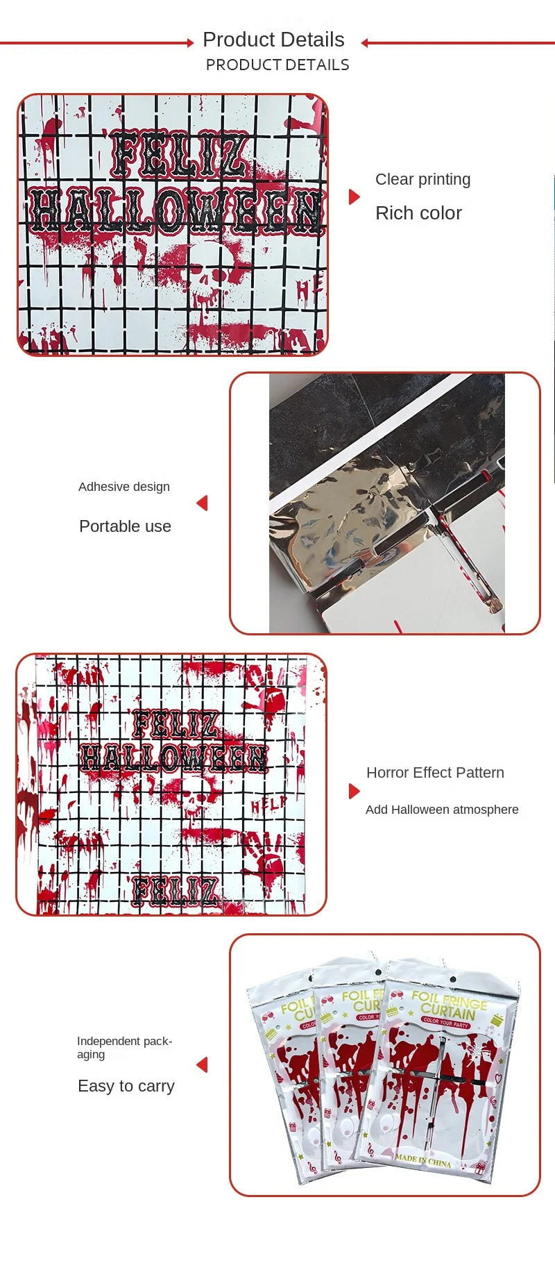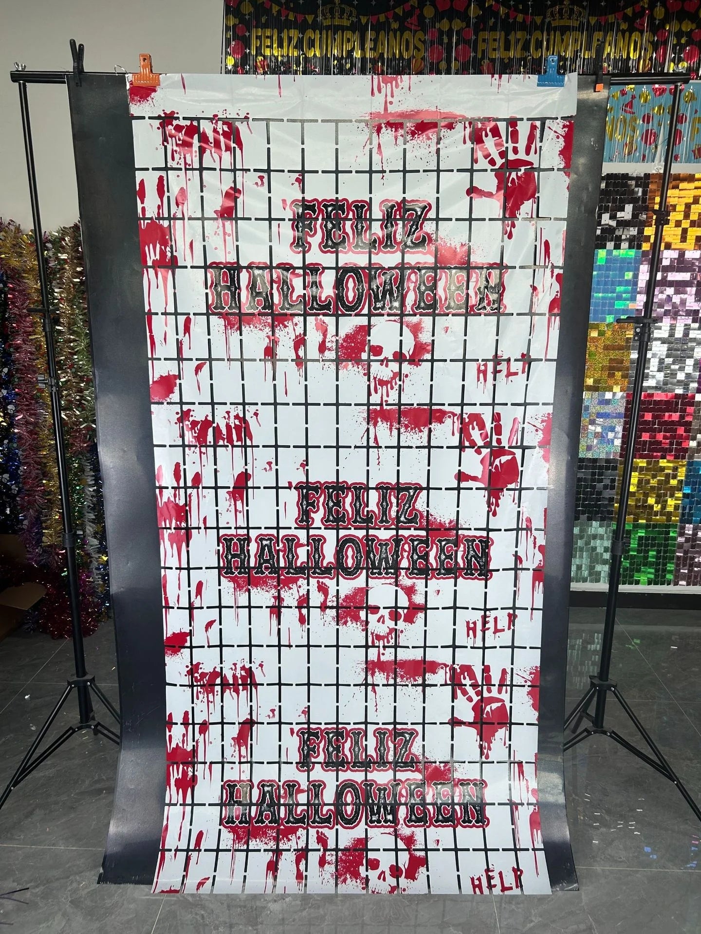 Halloween Decor Party Supplies Rain Squares Curtain Halloween Hanging Decorations Frightening Background Curtains Wall Props
