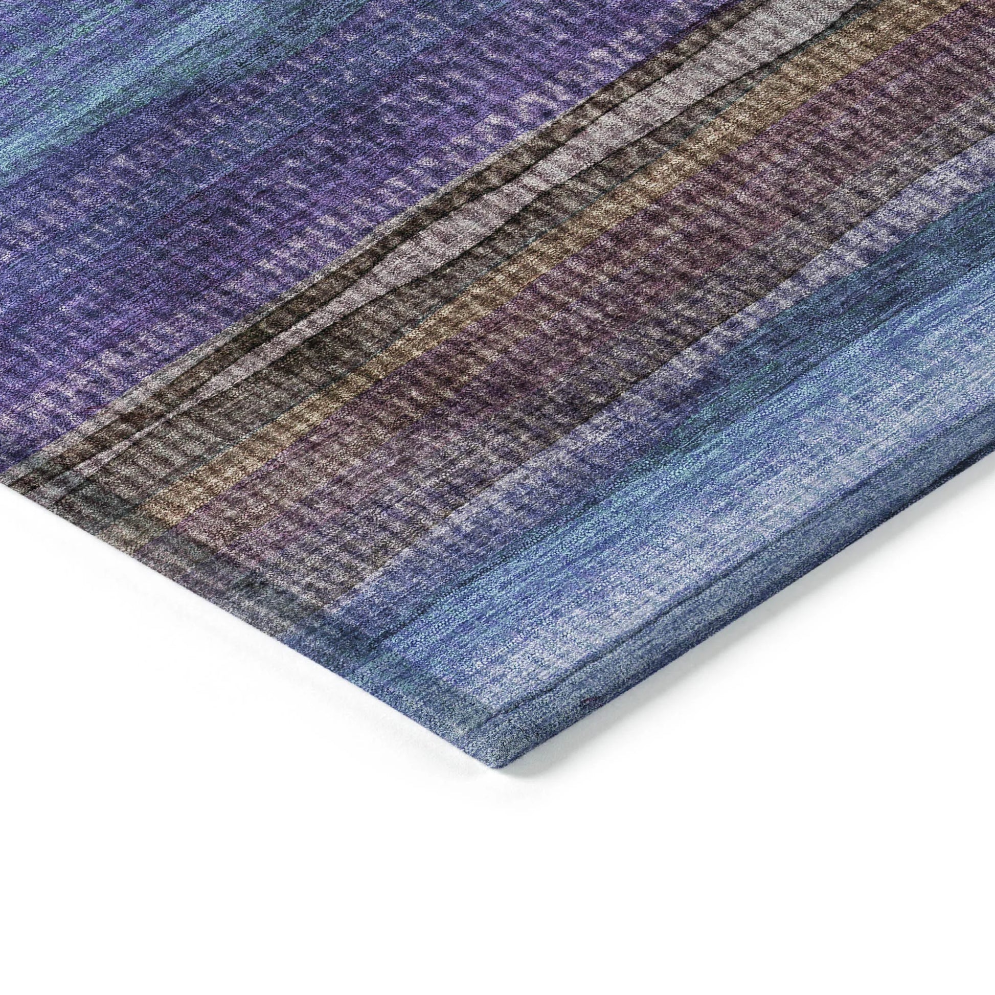 HMS 10' X 14' Striped Indoor Outdoor Area Rug Blue Purple and Taupe Washable
