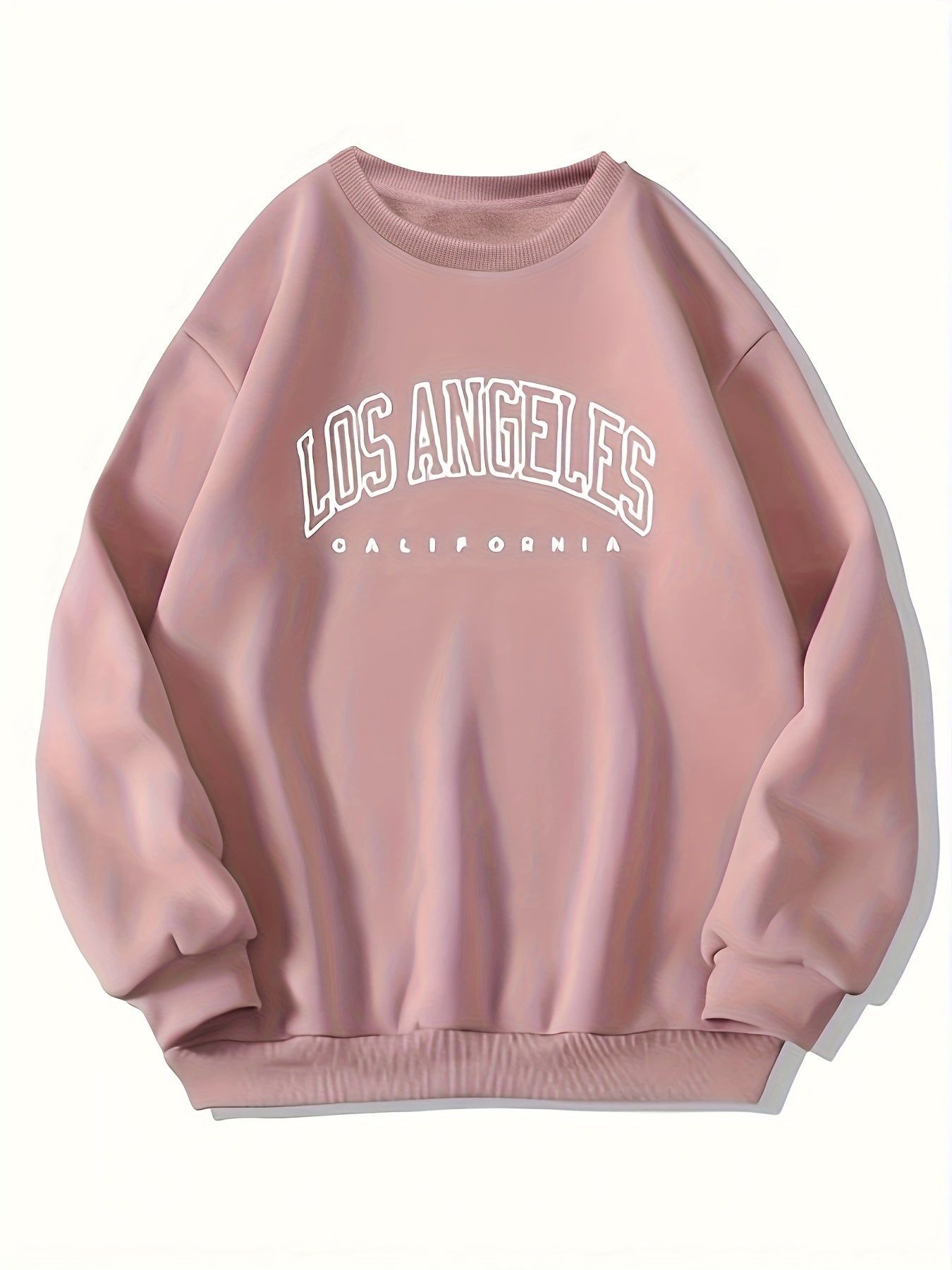 Los Angeles Print Preppy Sweatshirt, Long Sleeve Crew Neck Casual Sweatshirt For Winter & Fall, Women's Clothing