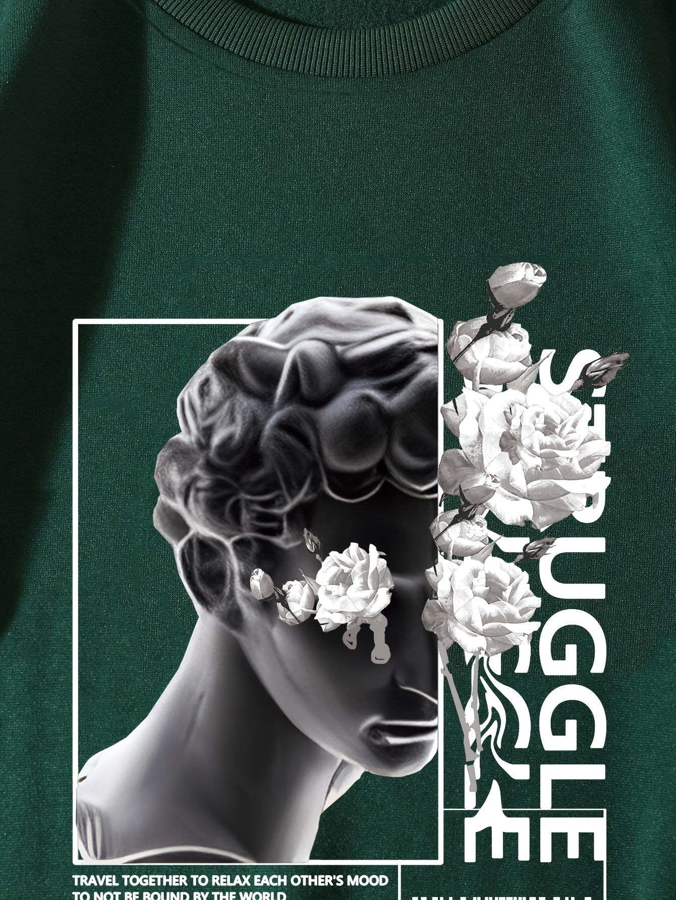Men And Roses Print, Men's Casual Hoodie, Drawstring Pocket Hoodie
