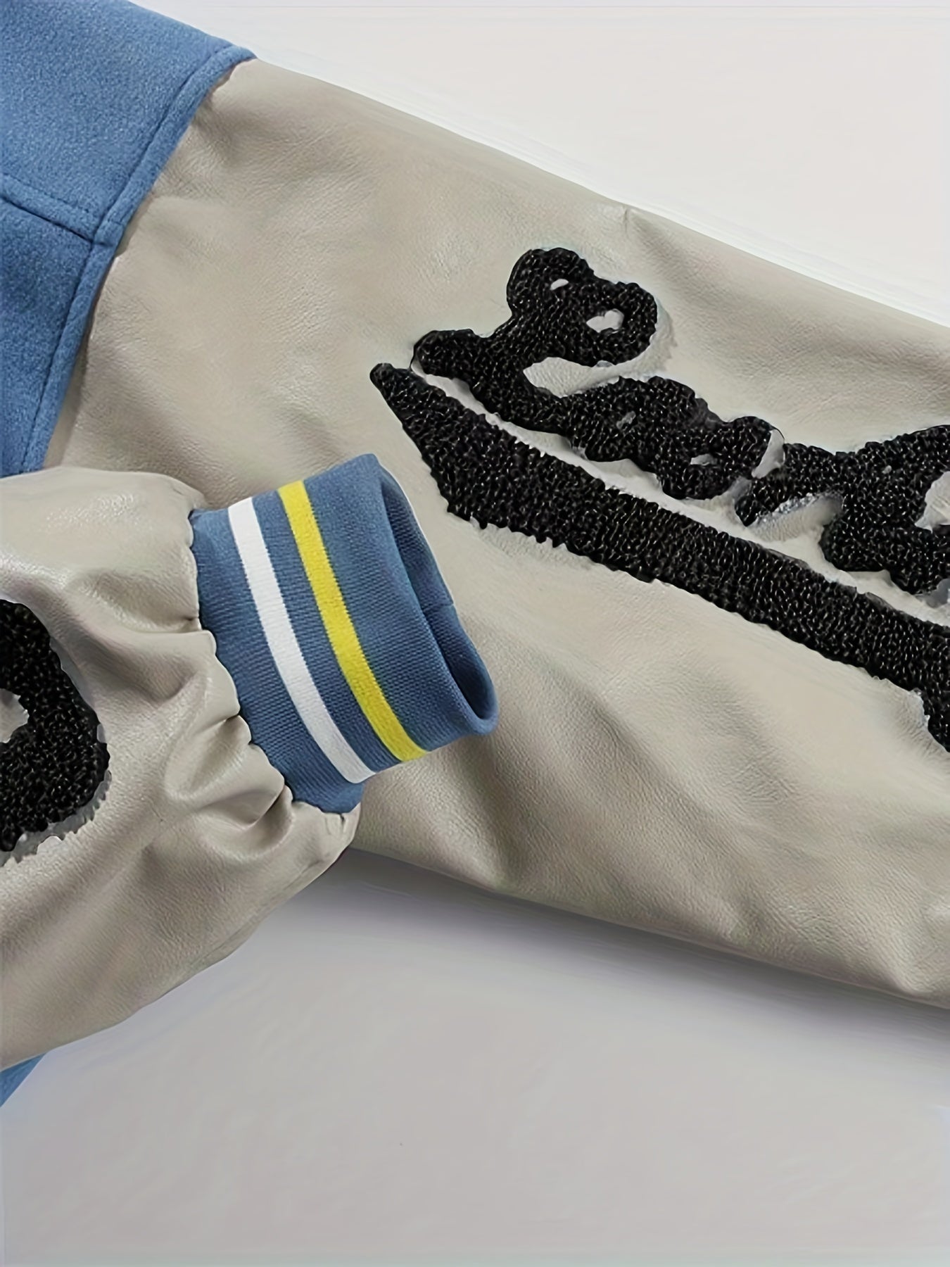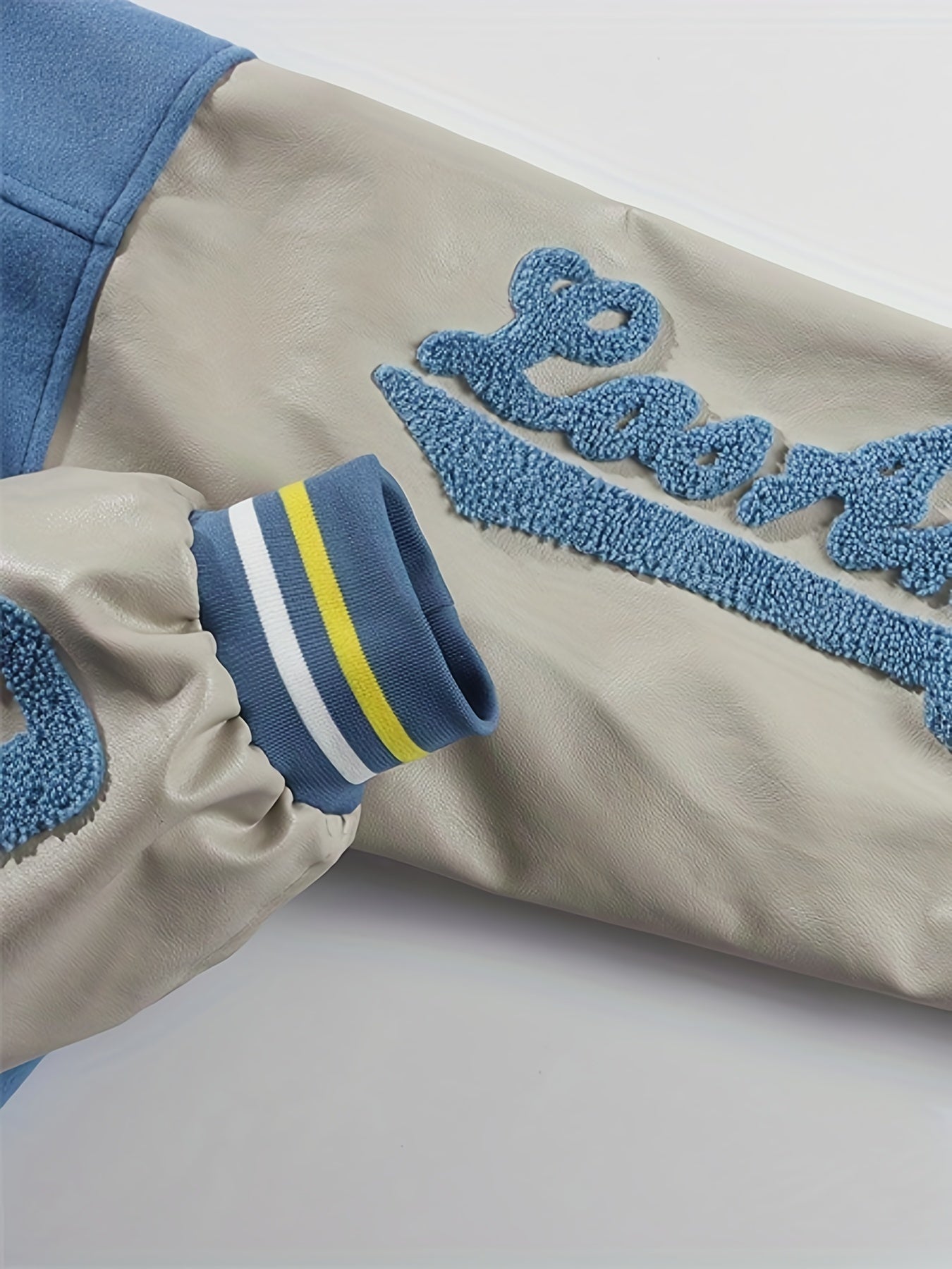 Men's Fleece College Varsity Jacket, Baseball Vintage Jacket, Casual Streetwear Coats Plus Size