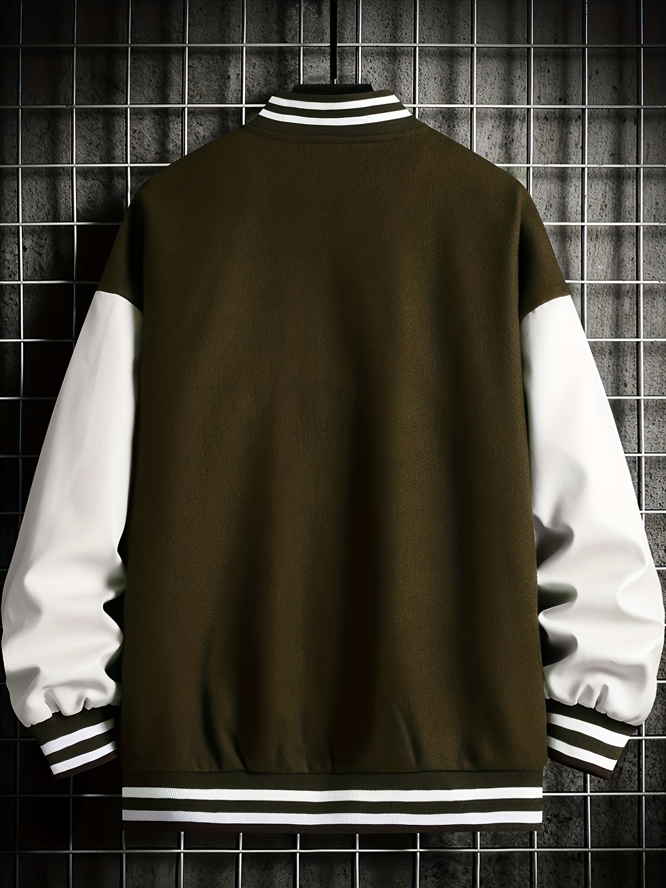 A casual warm baseball jacket for men in nine colors, suitable for spring, autumn, and winter. It features fine embroidery of Mao Jinxiu and letters, making it unisex and perfect for showcasing style and trends (inner sweater and hat not included).