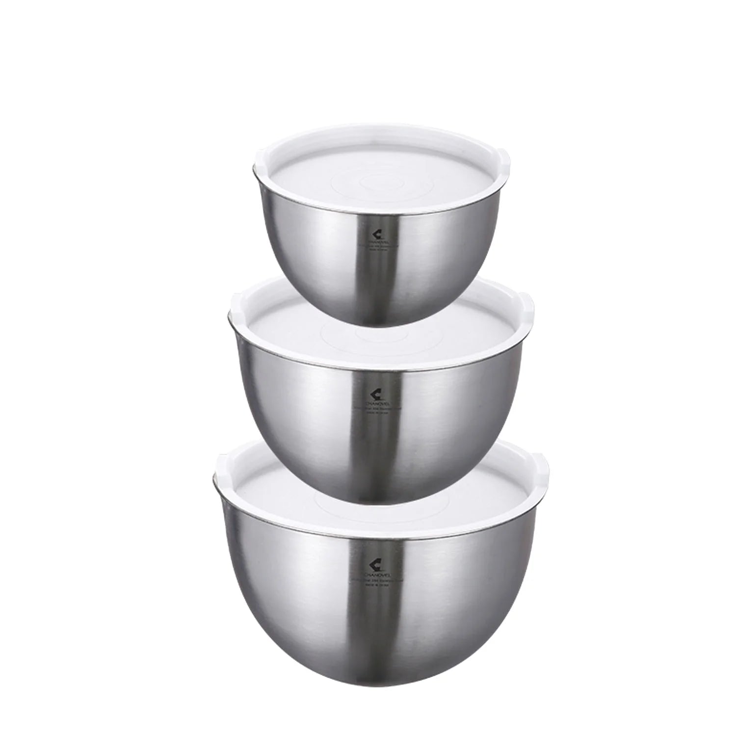 Mixing Bowl Stainless Steel with Lids Nesting Bowls with Measuring Marks for Cooking Baking Serving Silver Mixing Bowl-Set of 3
