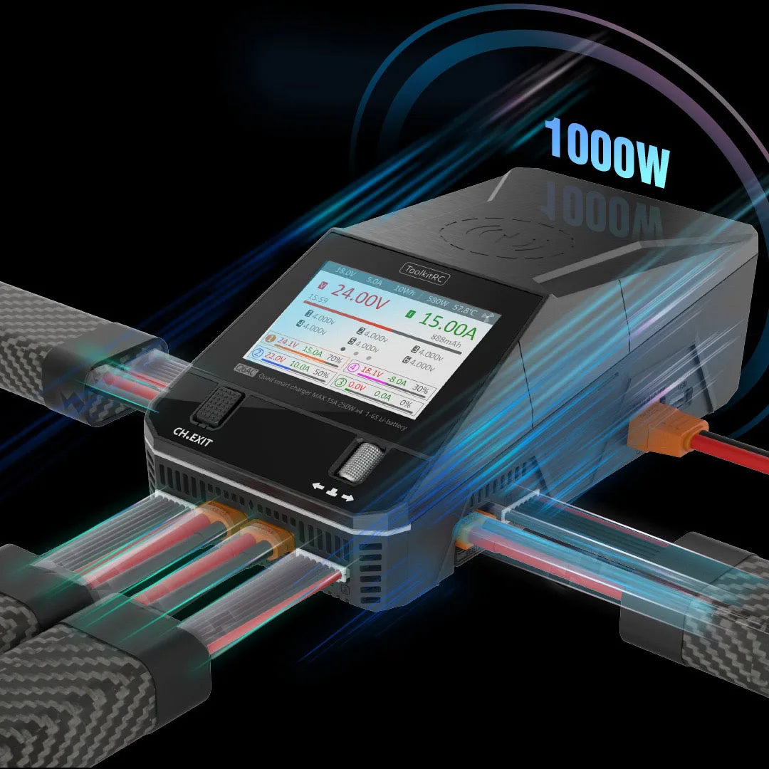 NEW ToolkitRC Q6AC Charger AC 400W/DC 1000W 4CH output Built-in 65W USB A/TYPEC Output ,LiPo, 1-6S,NiMH 1-16S,PB 1-10S Charger