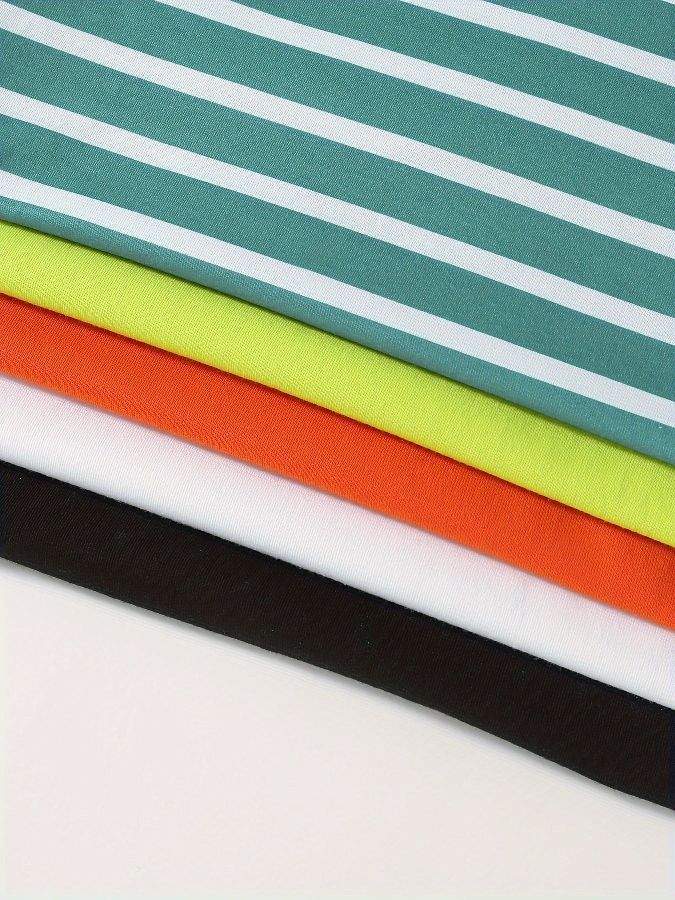 [Soft | Comfortable] 5pcs Soft & Comfortable Solid Color & Striped Round Neck T-shirt Tees Tops | Casual Boys And Girls Summer Clothes