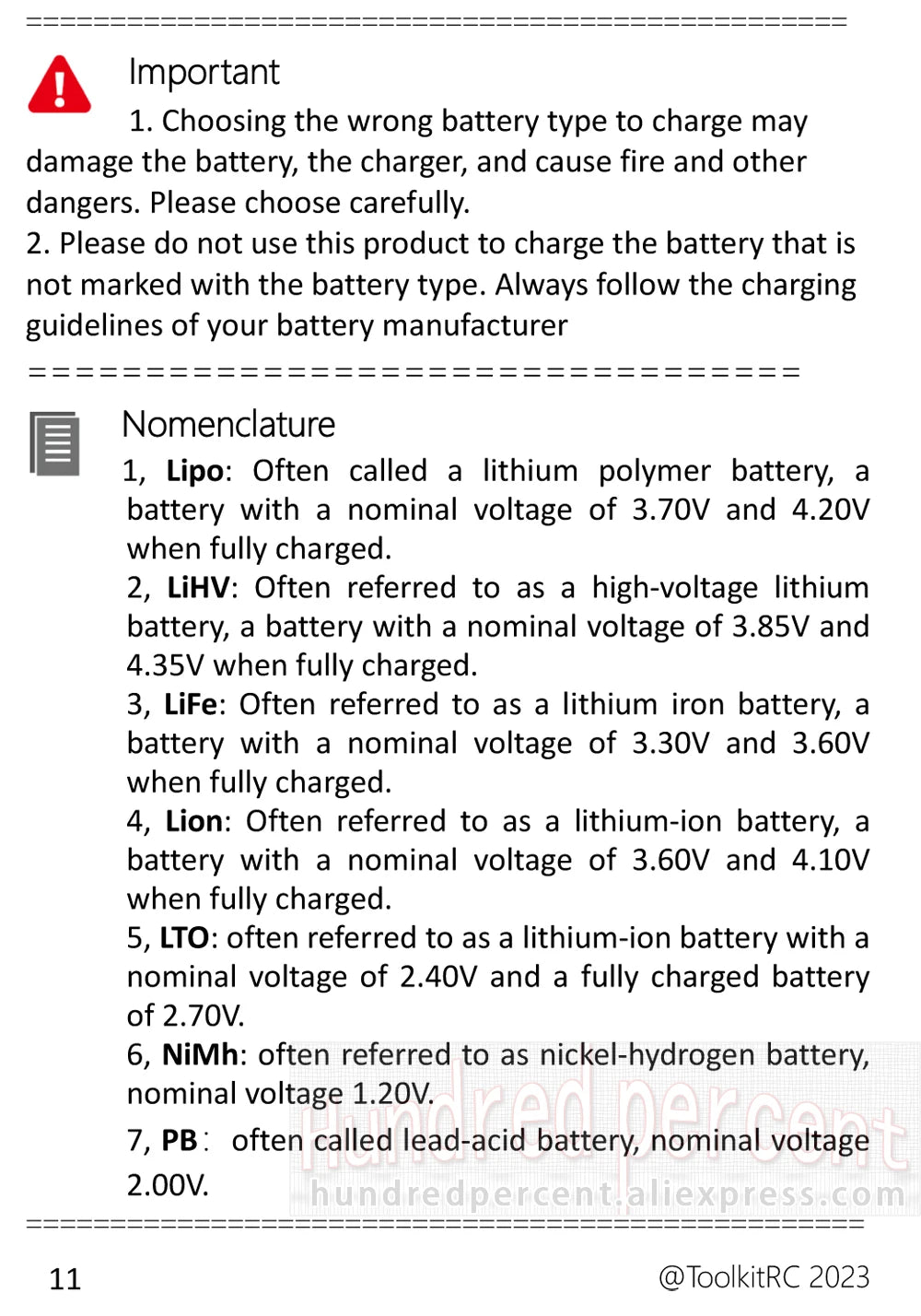 Battery type: Lipo LiHV LiFe Lion LTO @ 1-6S