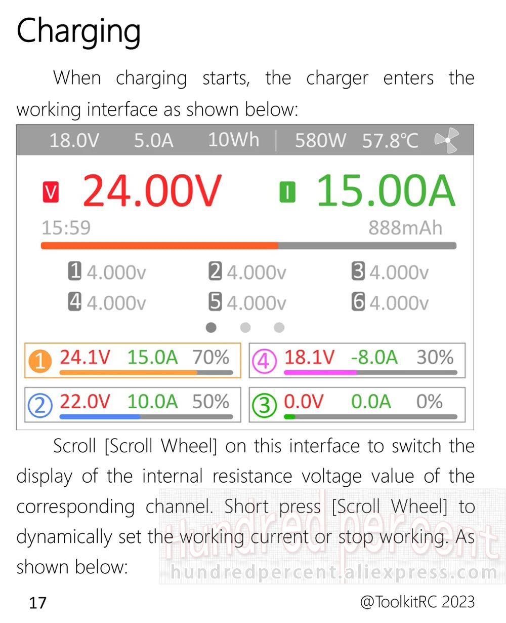 Q6AC is a four channel balanced charger product with IPS highlighted display screen and more convenient operation of roller encoder.