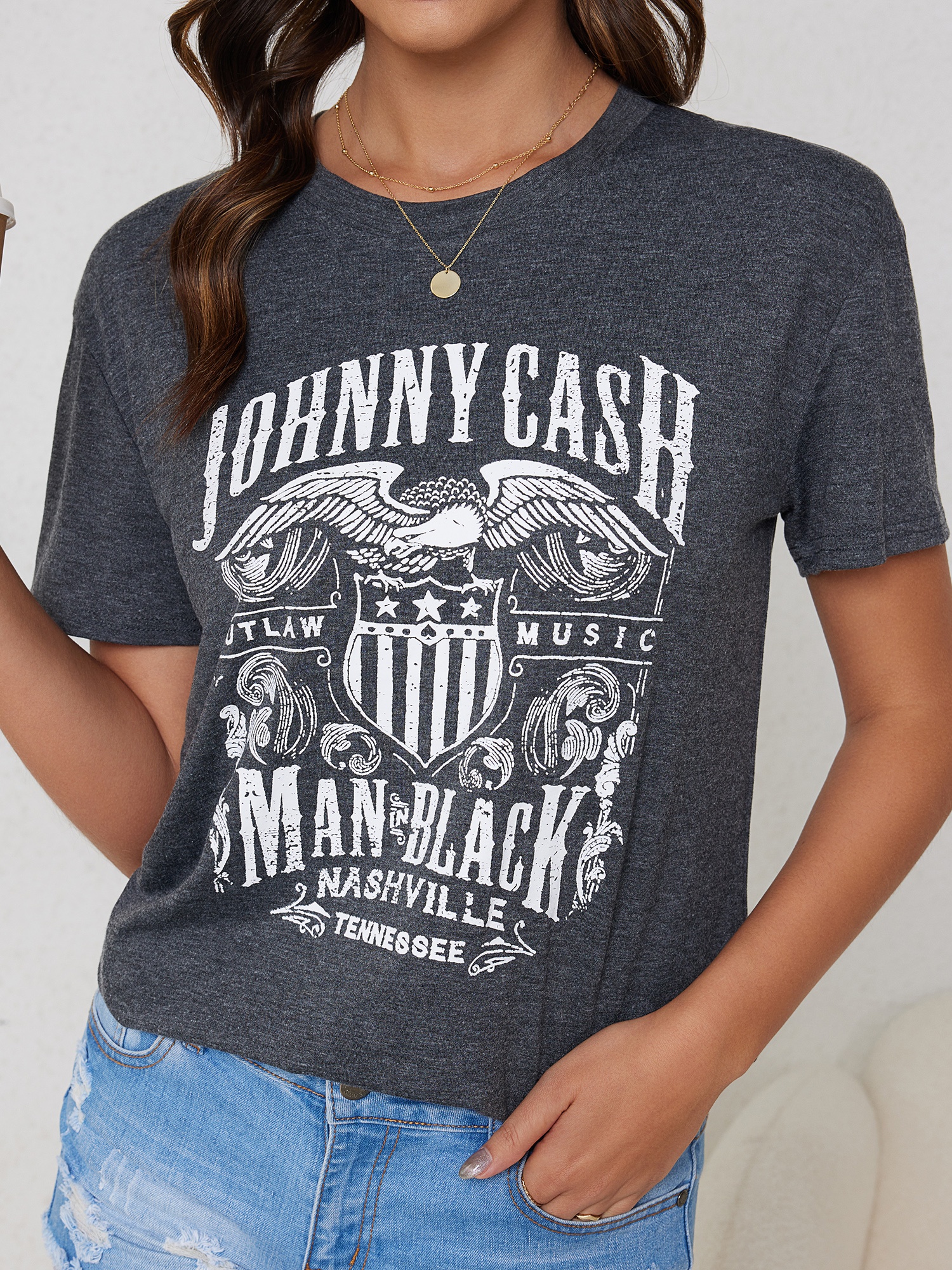 Vintage Country Music Festival Print T-Shirt, Retro Style Short Sleeve Crew Neck Casual Top For All Season, Women's Clothing