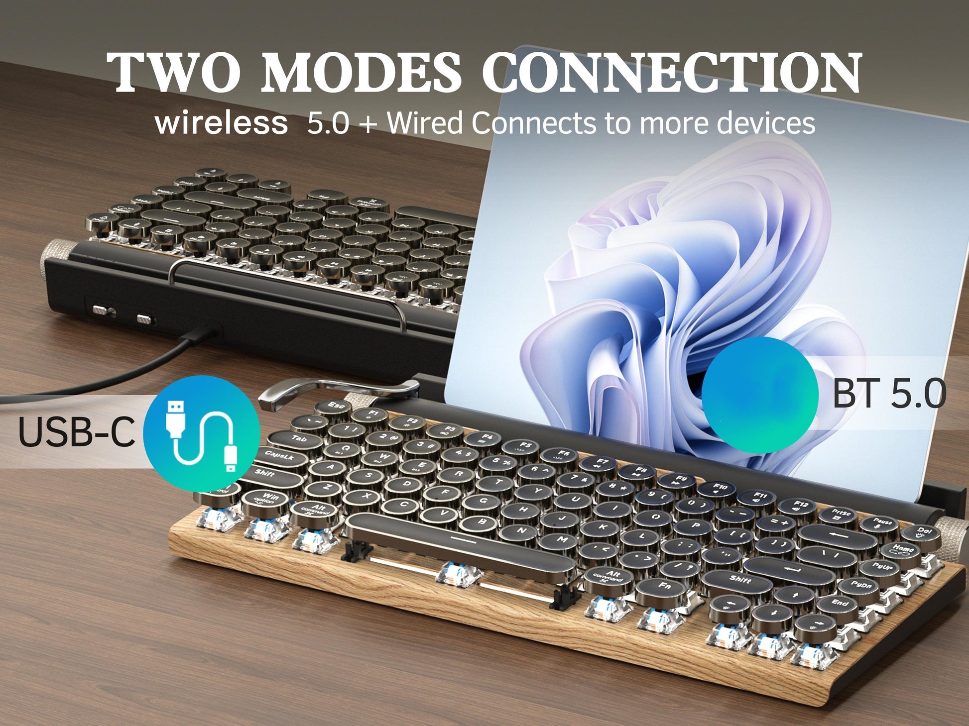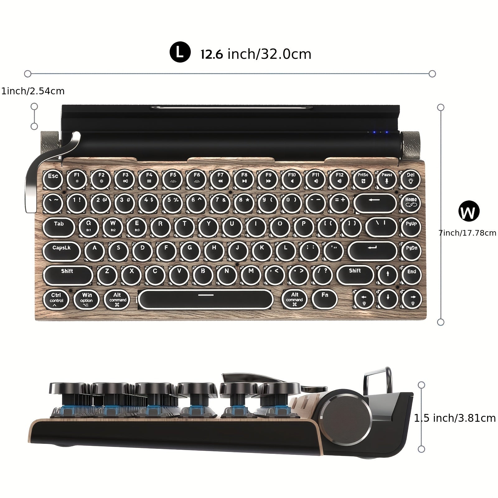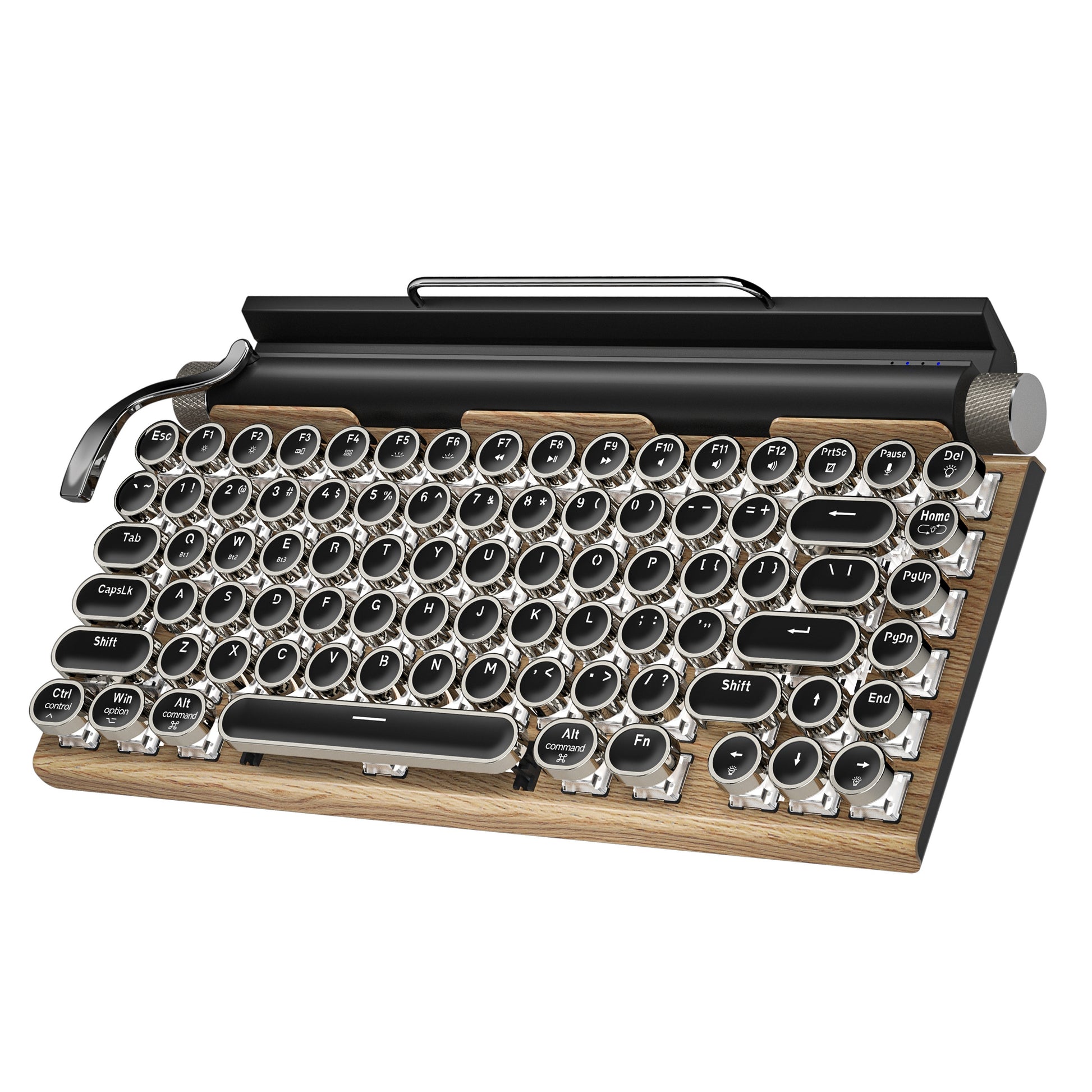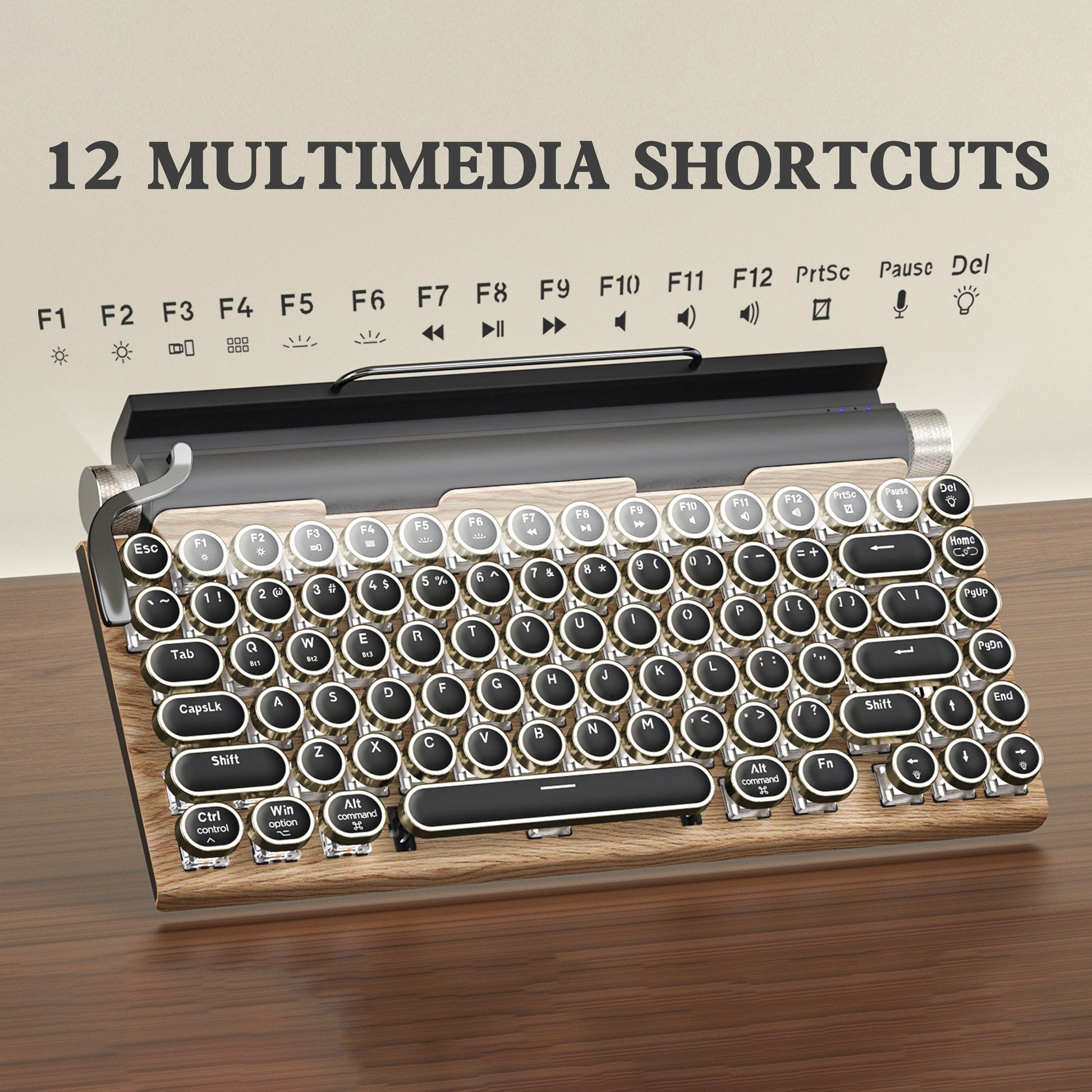 Wired & Wireless Retro Multi-Device Mechanical Typewriter, Compact 80% Layout Keyboard, Hotswappable, Wireless 5.0, Round Keycaps, LED Backlit, For Windows/IOS/Android/Linux