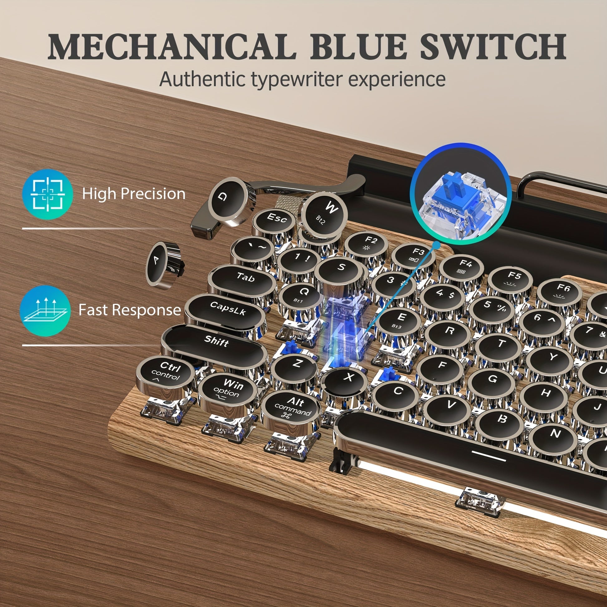 Taiahiro Retro Typewriter Wireless Gaming Keyboard, Clicky Blue Switches