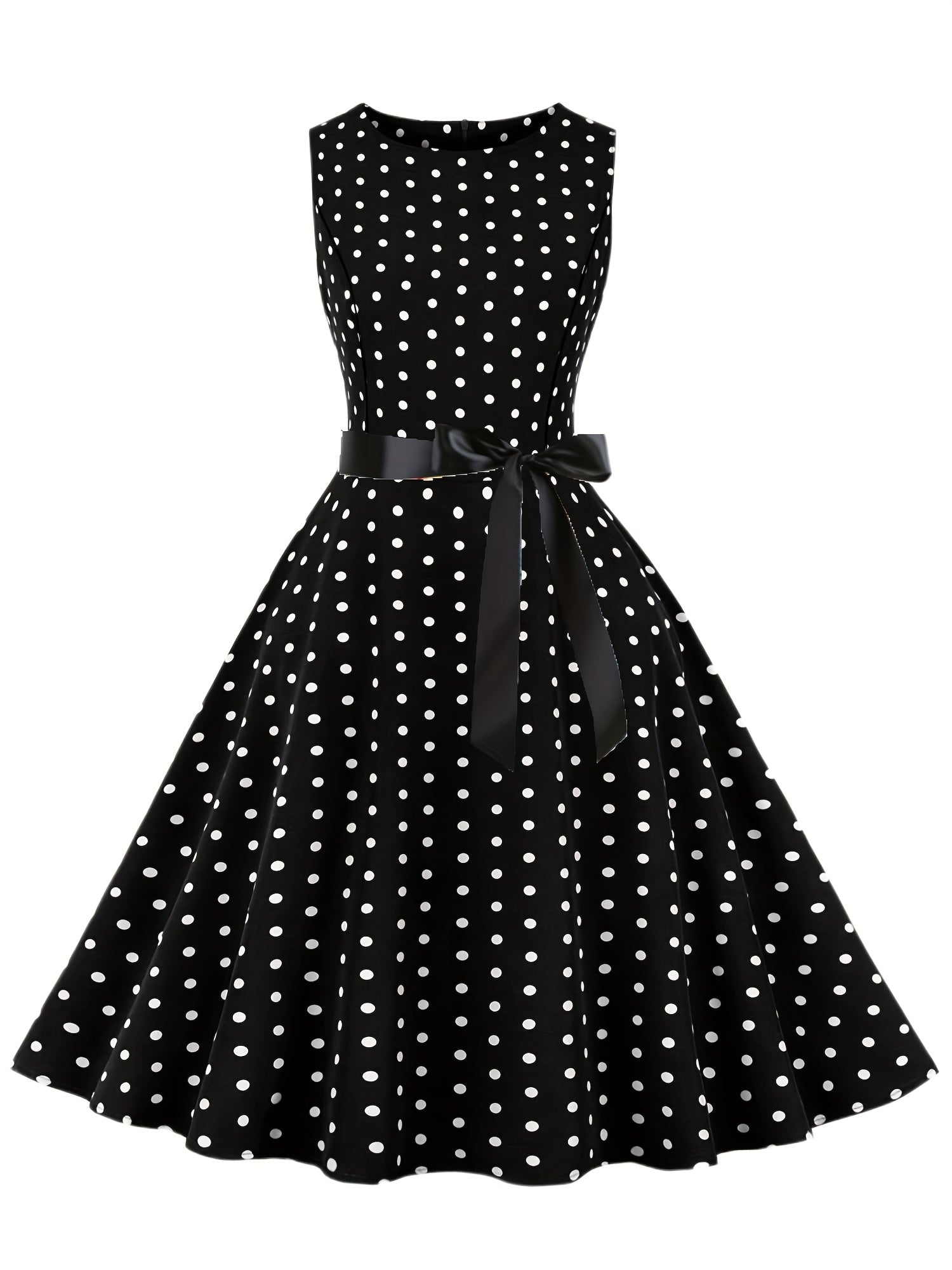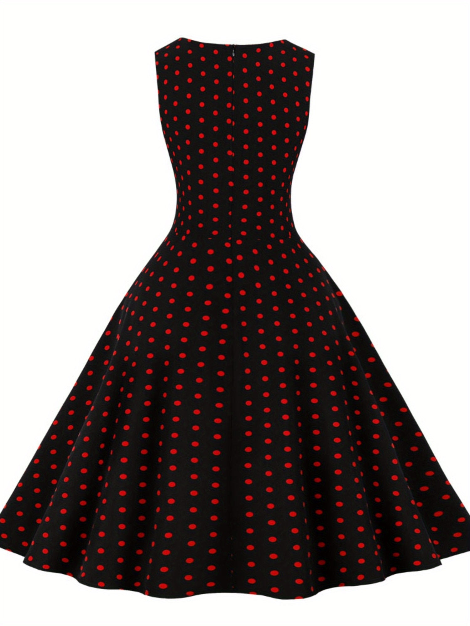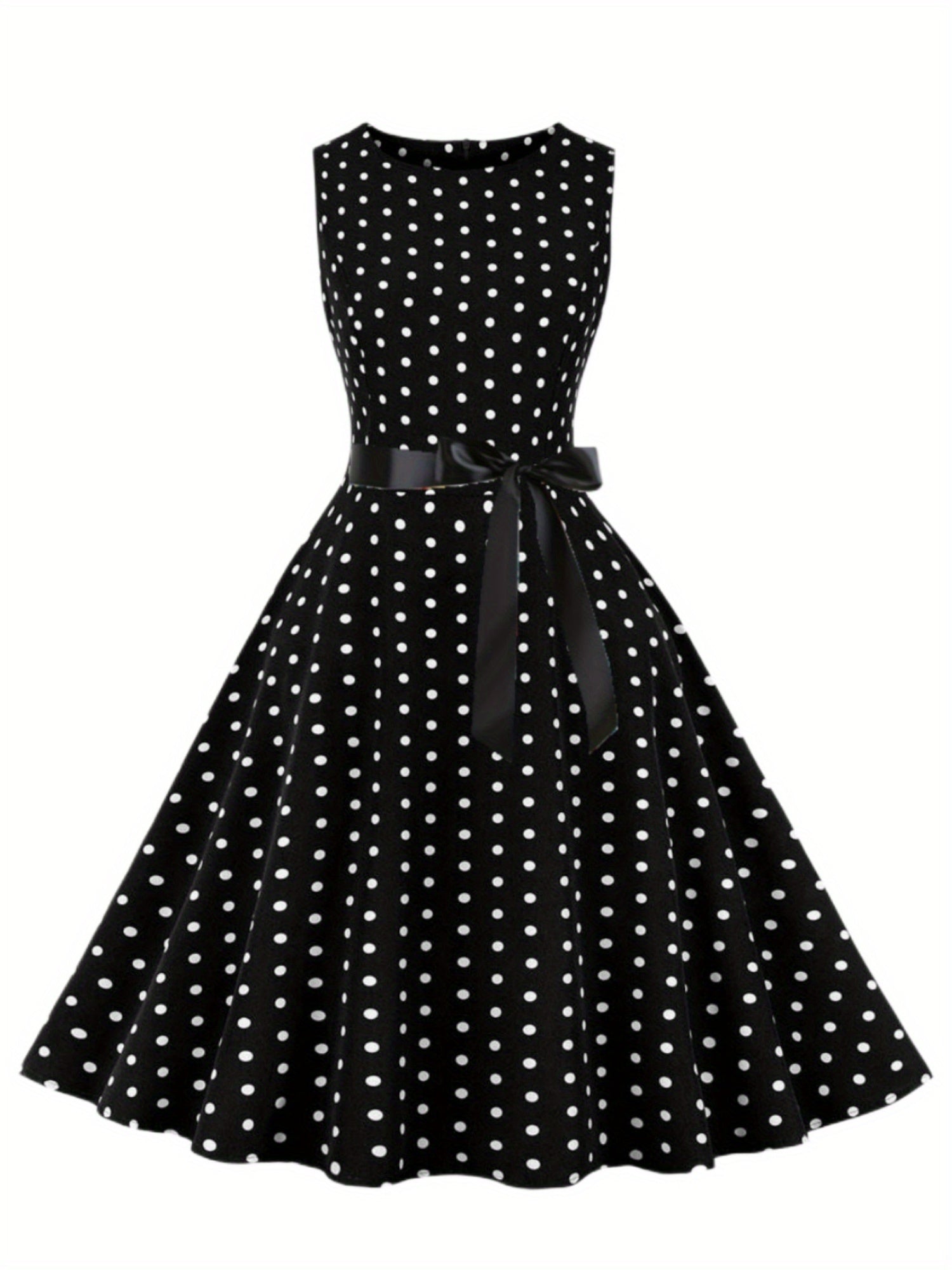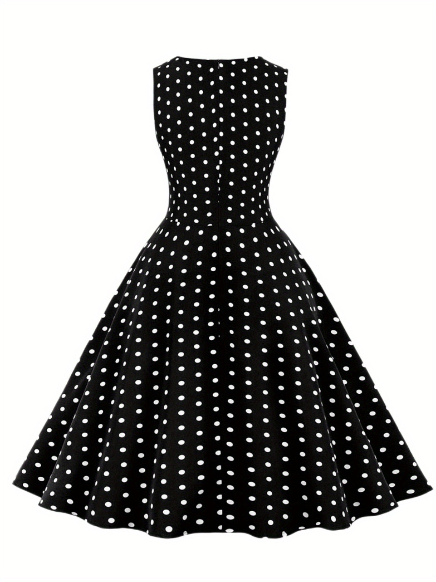 Women's Chic Sleeveless Polka Dot Dress - Vintage-Inspired Summer Sundress With Breathable Fabric, Perfect for Vacation Parties & Spring/Summer Celebrations