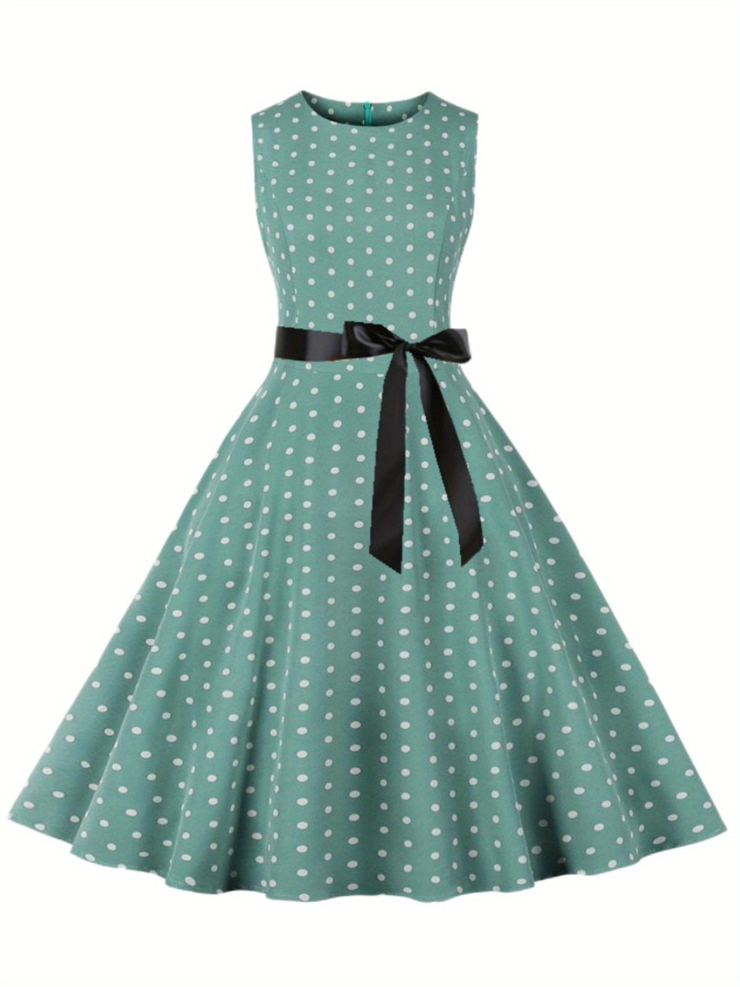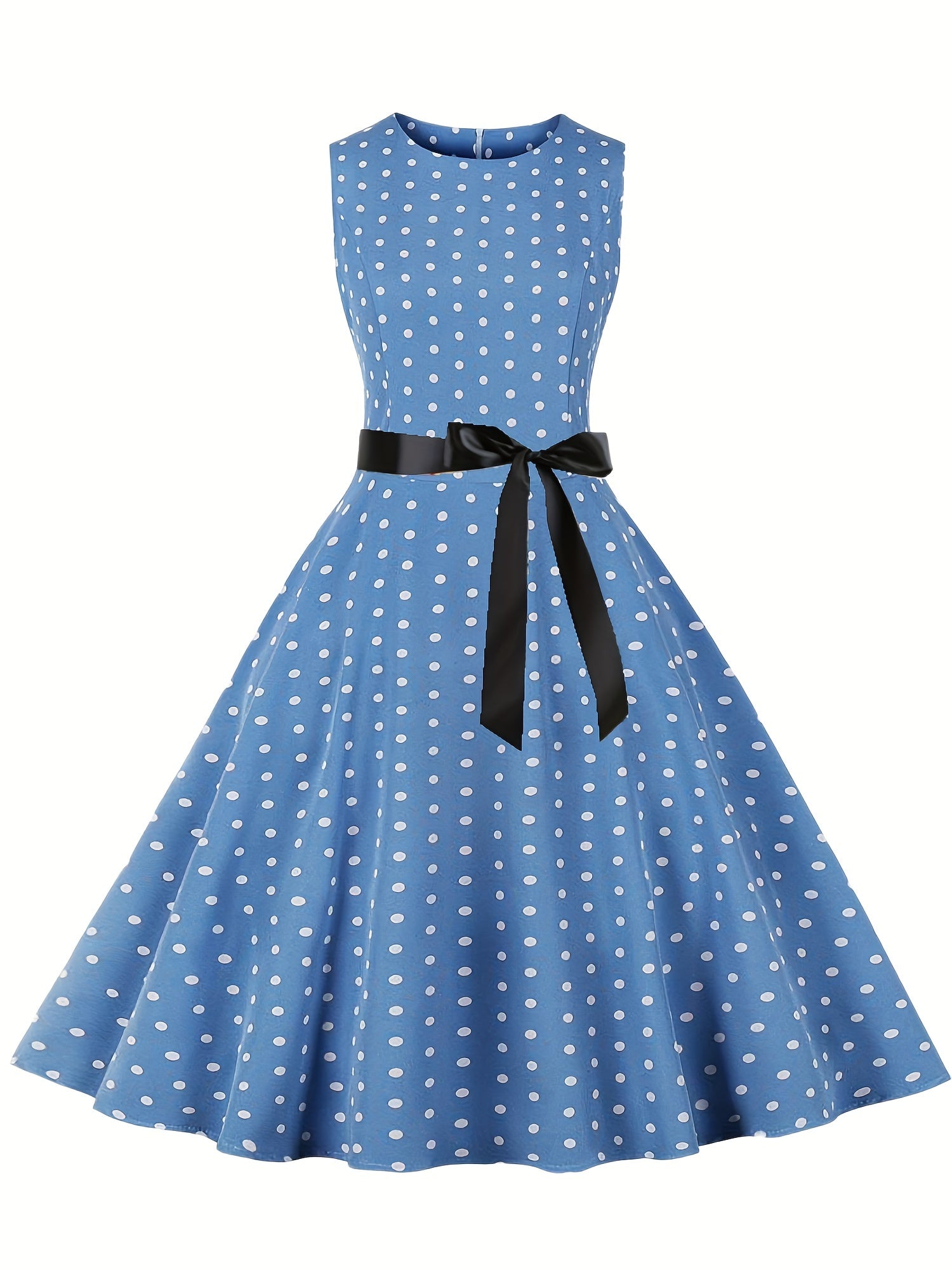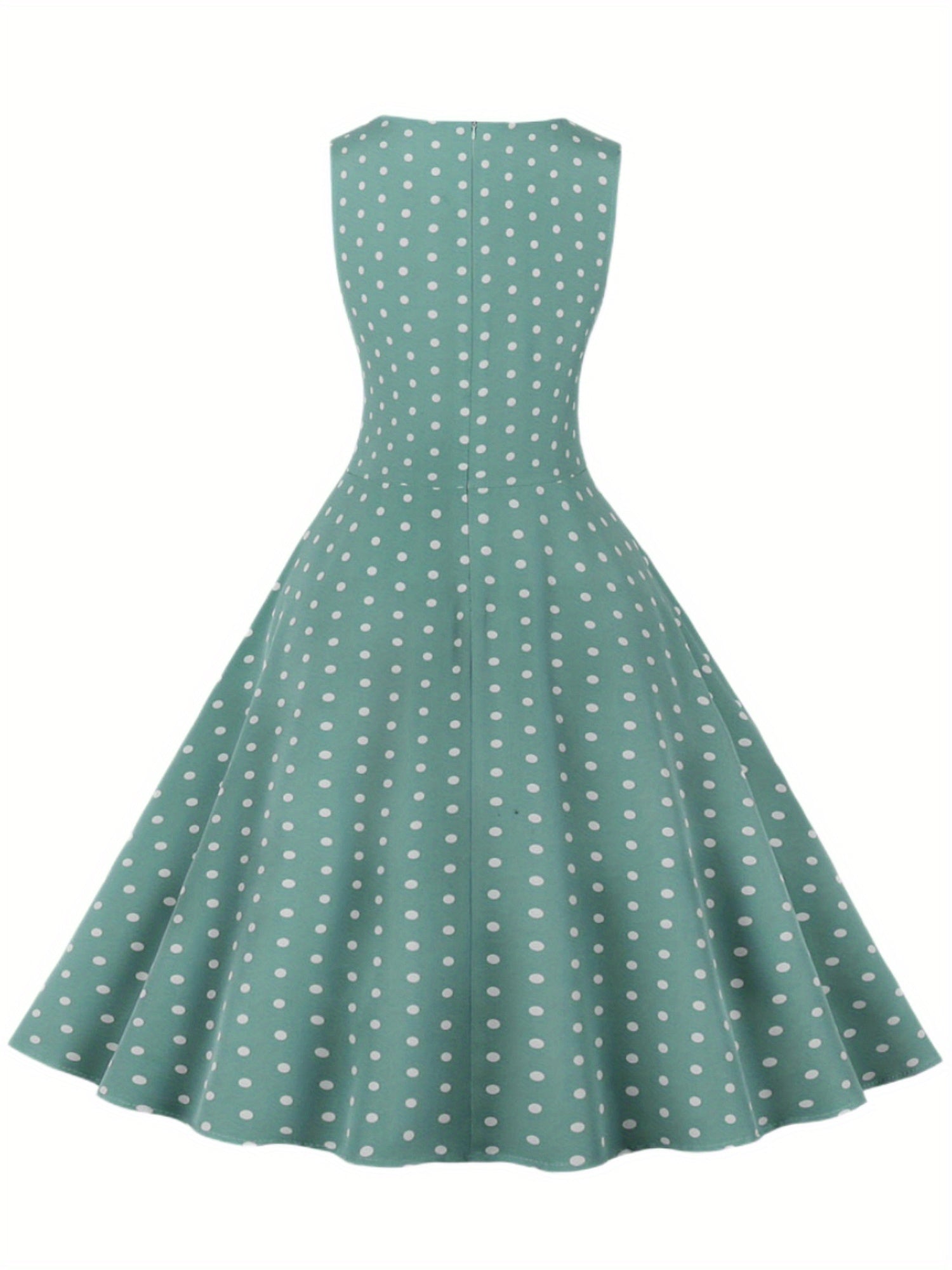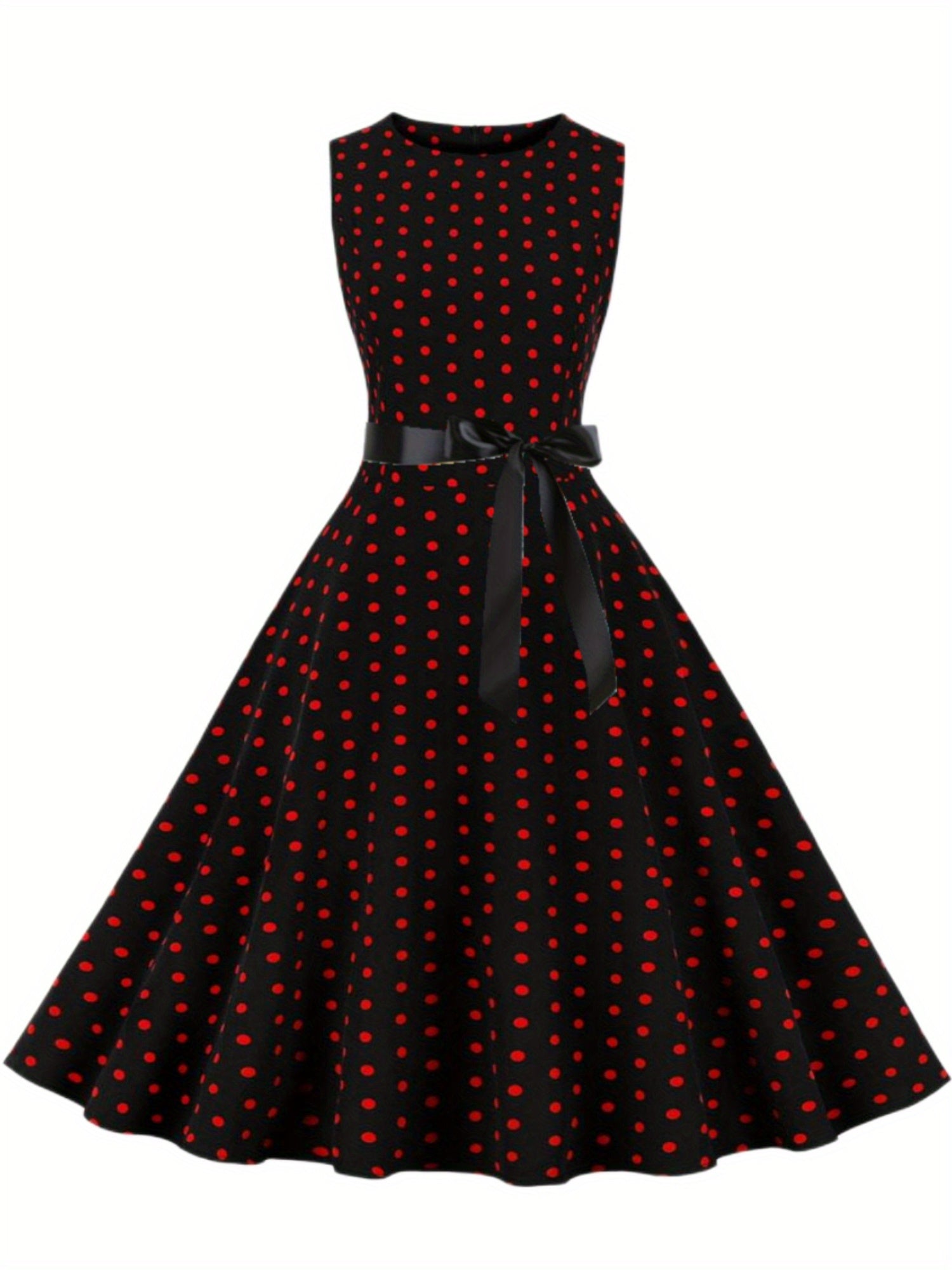 Women's Chic Sleeveless Polka Dot Dress - Vintage-Inspired Summer Sundress With Breathable Fabric, Perfect for Vacation Parties & Spring/Summer Celebrations