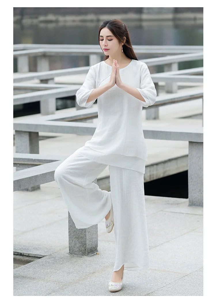 Yoga Clothes Women New Ethnic Style Meditation Clothes Cotton and Linen Loose Two-piece Suit Traditional Clothing for Women